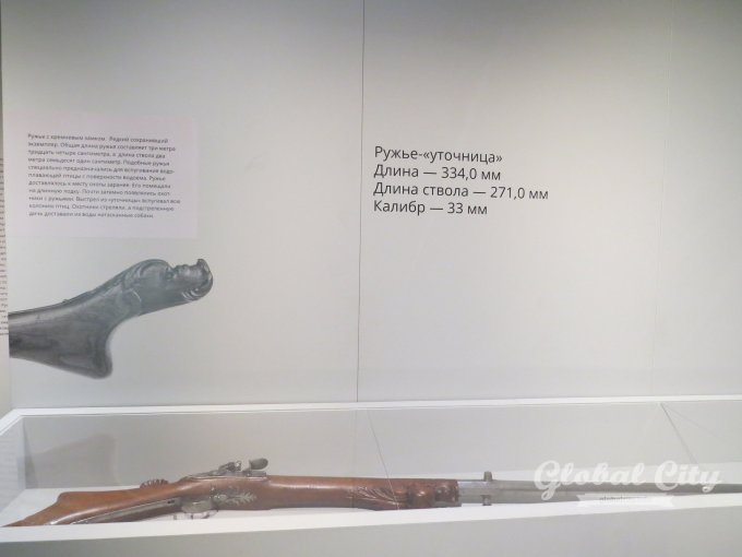 Говоря о представленном на выставке оружии, старший научный сотрудник Отдела «Арсенал» Государственного Эрмитажа Мадина Зайченко отметила, что главная задача этих экспонатов – сделать так, чтобы люди поняли: оружие – это история. К примеру, в Эрмитаже представлен редкий экспонат, вес которого 29 кг, длина составляет три метра 34 сантиметра, и на нем выгравированы скульптурные изображения – морды двух собак. В мире сохранилось всего десять подобных ружей-«уточниц».