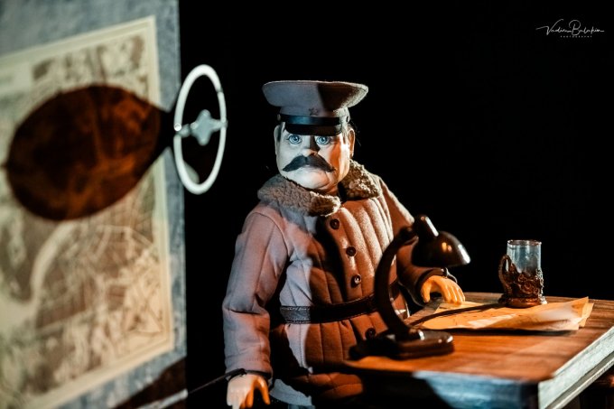 «Наверное, вы часто видели, как актеры берут кукол за руки. Но мне хотелось, раз это правдивая история и мы взяли за основу эстетику старых фотографий, максимально убрать руки. Когда актер присутствует, мы все понимаем, что он – это душа персонажа, но визуально мне хотелось это ограничить», – рассказал художник.