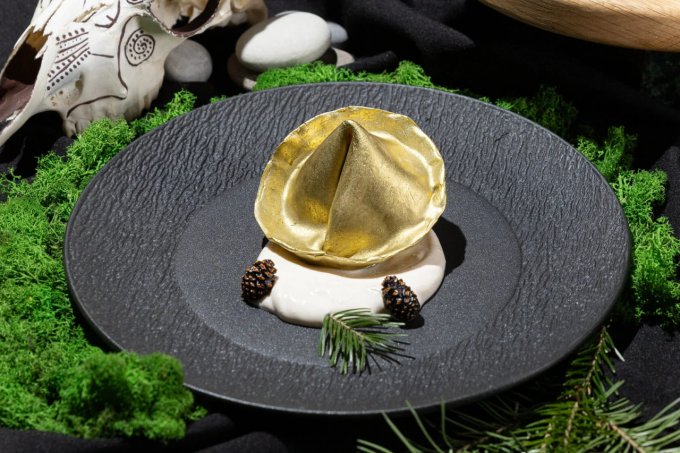 В ресторане «Два деда» решили объединить пельмени и золотодобычу, которая процветала на Урале несколько веков назад. Здесь создали десерт «Золотой пельмень «Вотанги» с кедровыми орехами, цукатами из моркови и облепиховым муссом.
