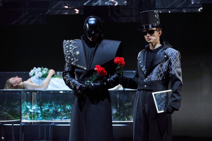 «Это история вечная, а раз она вечная, то может быть в любом пространстве. Киберпанк родился у нас в спектакле от слова «маскарад» и от того, что люди играют, люди надевают маски. Говоря о сегодняшнем времени, что такое «маска»? Это люди, которые под никами сидят у себя дома, прячутся за чужими лицами и могут говорить все, что угодно в интернете», – говорит режиссер Михаил Заец.