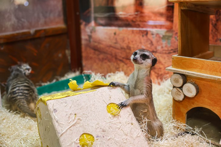 «Что касается меню, сурикаты предпочитают деликатесы вроде курочки, рыбки, яиц, творожка и насекомых. Аппетиты отменные!», – говорят в зоопарке.