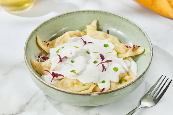 Так, в Room Cafe предлагают три блюда с пельменями. Пельмени морские с начинкой из фарша форели, тунца, кальмаров и креветок. Подают их со сливочным муссом с пармезаном, куркумой, зеленым маслом и микрозеленью. Пельмени Уральские – это пельмени с фаршем из свинины, телятины и филе цыпленка с добавлением репчатого лука. Подают пельмени со сметаной, грибным бульоном и зеленым луком. Пельмени с моченой вишней – это пельмени, вкус которых будет раскрываться постепенно. В пельменное тесто завернули вишню, гвоздику, сахар. Сами пельмени подают со сметаной и голубикой.