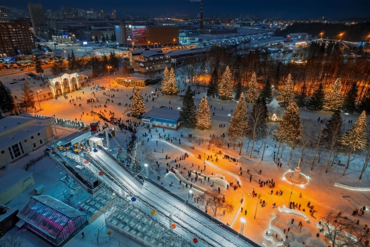 В Парке Маяковского в пятый раз открывают гигантскую горку, высота которой достигает 17 метров. Она имеет искусственное покрытие, которое позволяет кататься даже в теплую и бесснежную погоду. Скатиться с горки можно на тюбинге, который автоматически поднимается на вершину.