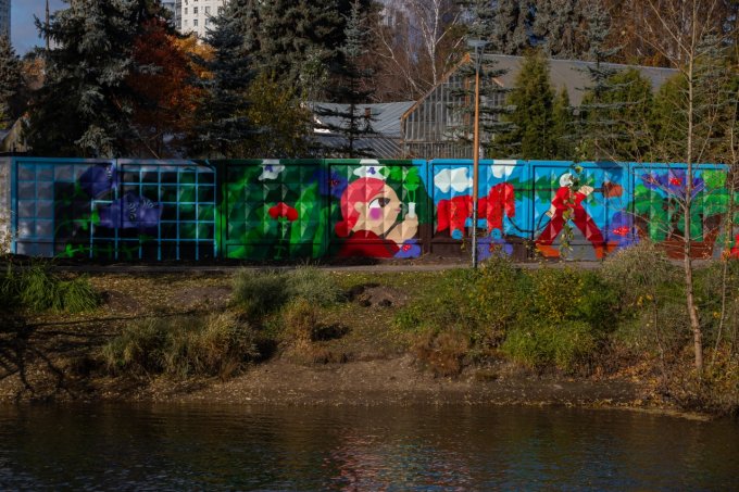 В Екатеринбурге появился новый арт-объект фестиваля «Стенограффия». Мурал «Хорошие истории» расположился у реки Исеть вдоль дорожки к воротам Дендрологического парка. На бетонном заборе художница Наталья Пастухова изобразила предметы, животных и людей, будто бы вышедших из мультфильма. Там можно увидеть фарфоровые статуэтки, елочные игрушки, крокодилов из «Киндера» и другие предметы. Обычно именно их горожане ищут на сайтах, обмениваются друг с другом и забирают домой.