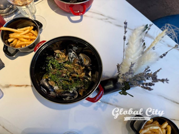 Как и в Москве, акцент в екатеринбургской точке сделан на чилийских мидиях. В меню можно найти «Мидии по-уральски» – блюдо, разработанное для столицы Урала, в которое добавляют грибы; мидии «Сливки, пармезан, черны перец» – гастрохит московских ресторанов. В сети разработали 101 соус для мидий, но в Екатеринбурге представлены еще не все варианты.