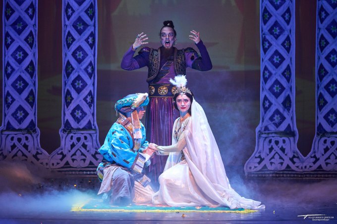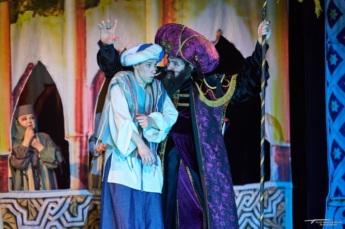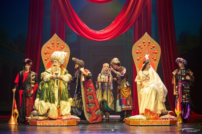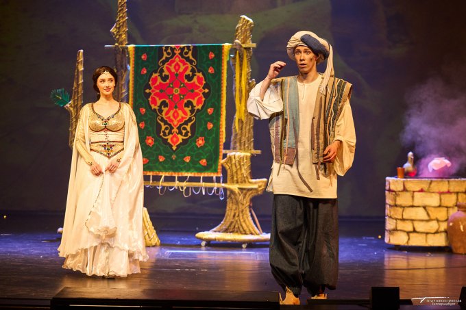 Борьба на саблях, восточные красавицы, Джин из лампы – так можно описать новый спектакль «Волшебная лампа Аладдина», премьера которого состоялась в ТЮЗе. История о парне из бедной семьи, воспетая в восточной сказке, который случайно становится обладателем волшебной лампы, была рассказана режиссером Владимиром Иванским, сценографом Ниной Рогозиной, художником по костюмам Никой Брагиной, музыкальным композитором Александром Жемчужниковым.