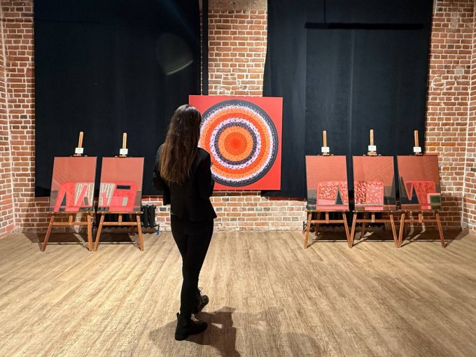 На выставке художники представили около 100 полотен из серий «Земля», «Красное и золотое», «Белый мир» и графические работы из разных серий. Так как художники работают в дуэте с 1994 года, все свои полотна они подписывают буквой «А».