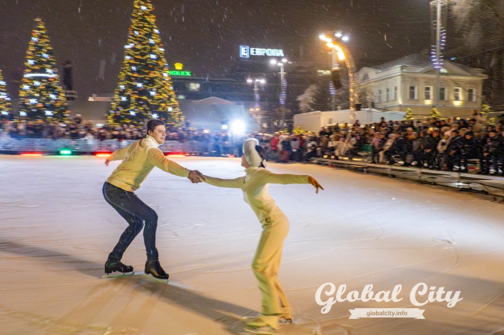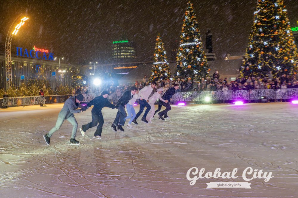 В Екатеринбурге на «Катка на Площади», который второй год подряд заливают вместо парковки на Площади 1905 года, выступили российские спортсмены – чемпионы России и мира, олимпийские чемпионы по фигурному катанию. Гала-шоу планировали представить на открытии катка в декабре, но из-за теплой погоды открытие катка пришлось перенести, как и выступление фигуристов. Добрались спортсмены до Екатеринбурга 30 января.