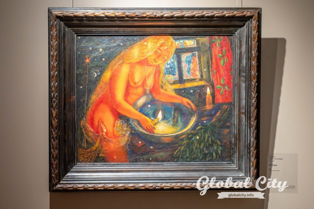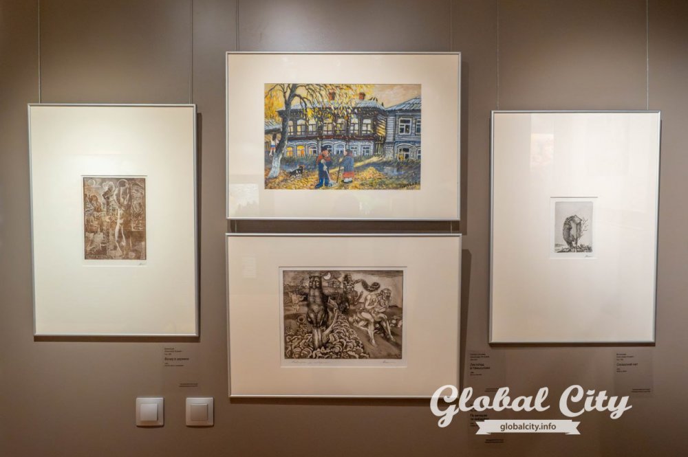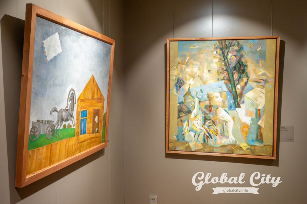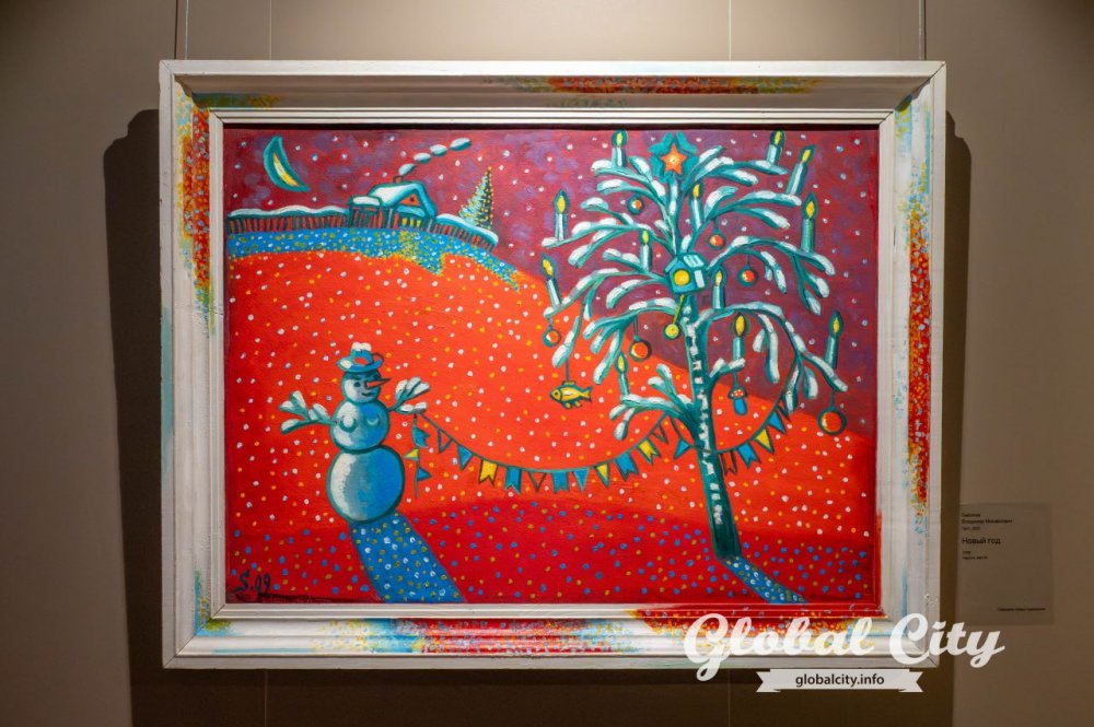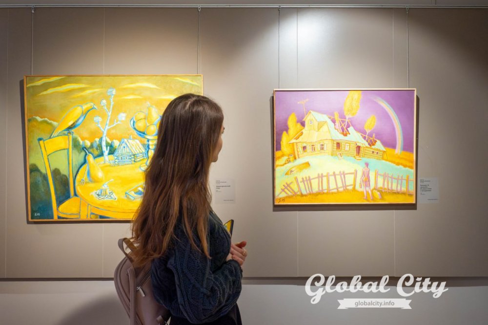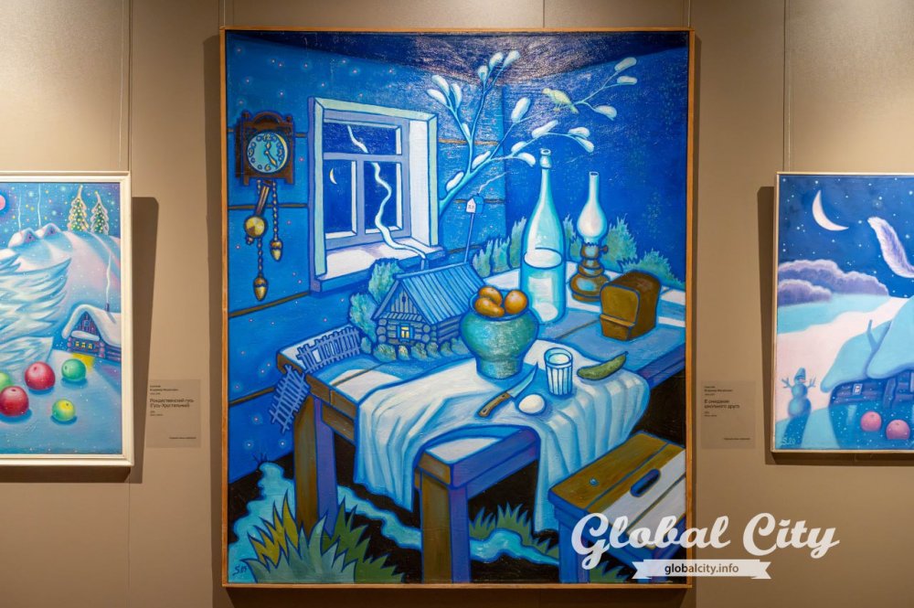 Хотя на выставке представлены работы профессиональных художников с академическим образованием, их соседство с наивным искусством в этих стенах выглядит максимально органично.