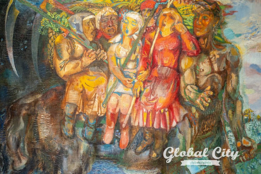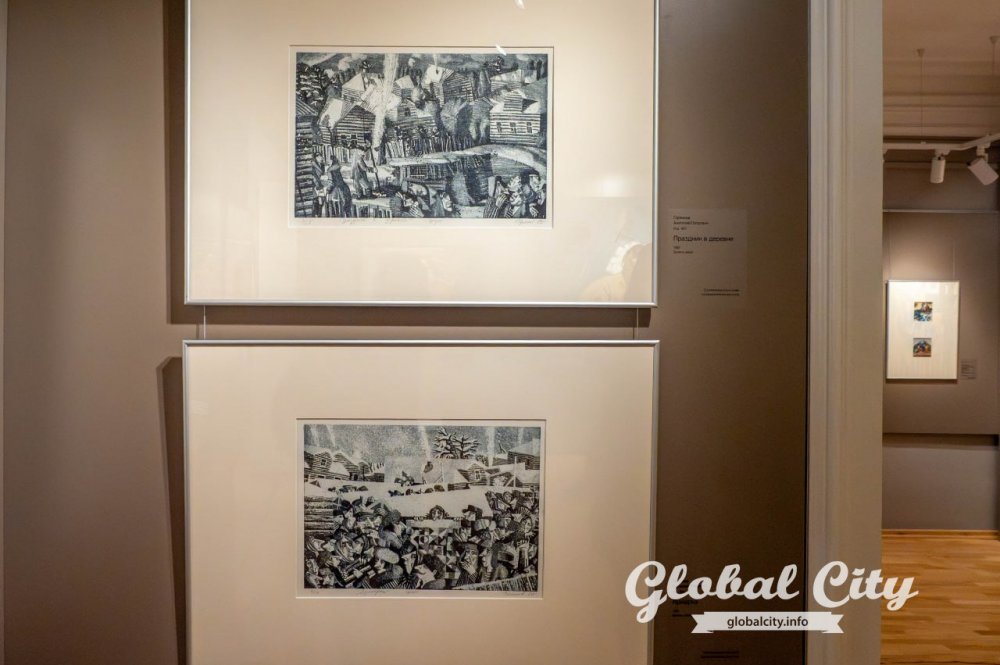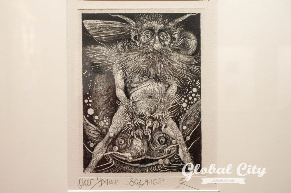 - Мир фольклора. Самый загадочный раздел. Здесь домовые и водяные Олега Яхнина выглядят такими же реальными, и по-деревенски ворчливыми, соседями, как и обычные люди, а в «Хороводе» Геннадия Райшева люди сливаются в единый орнаментальный организм.