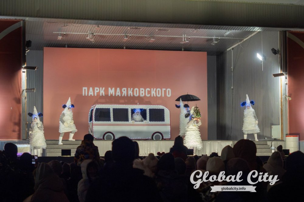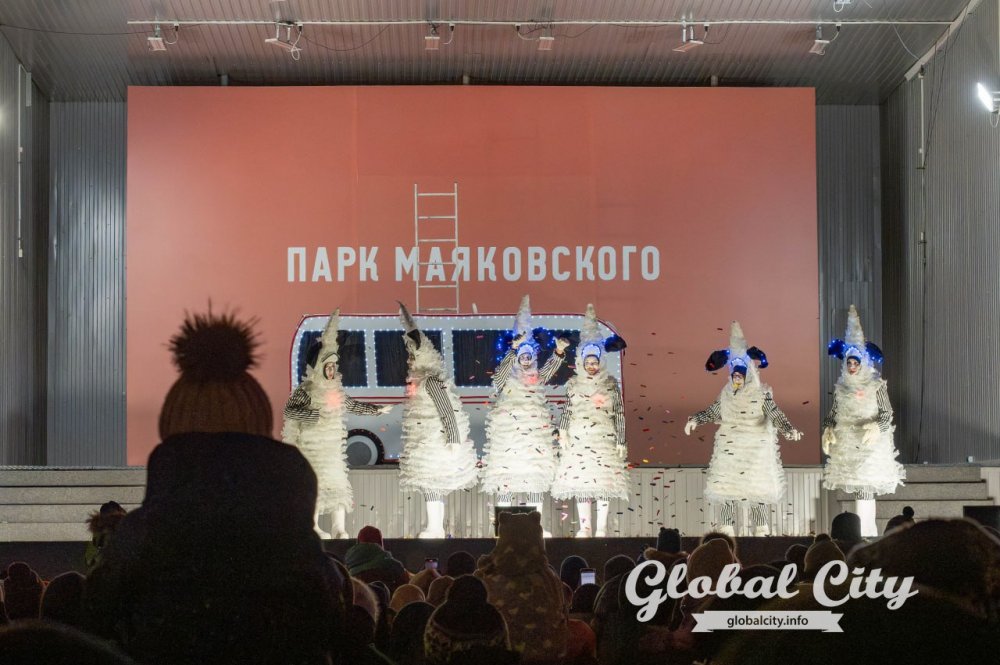 Парк Маяковского 6 декабря открыл зимний сезон. В этот день горожане встретились с Дедом Морозом и Снегурочкой, танцевали под новогодние песни, посмотрели спектакль и приняли участие в зажигании огней на новогодней елке.