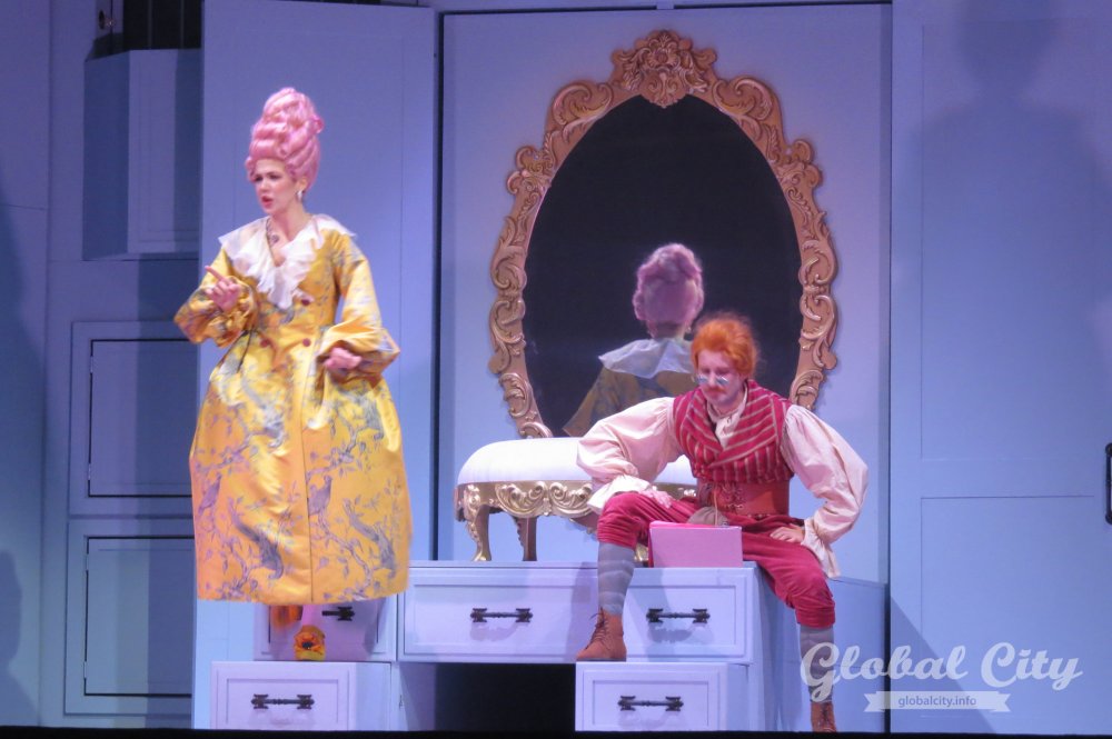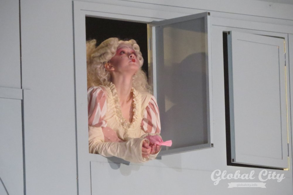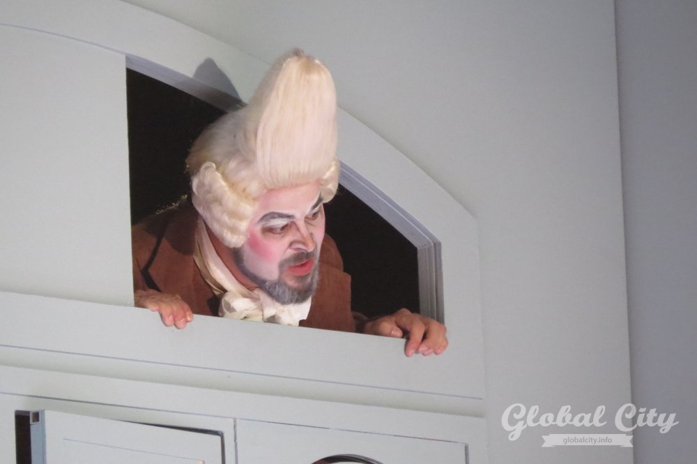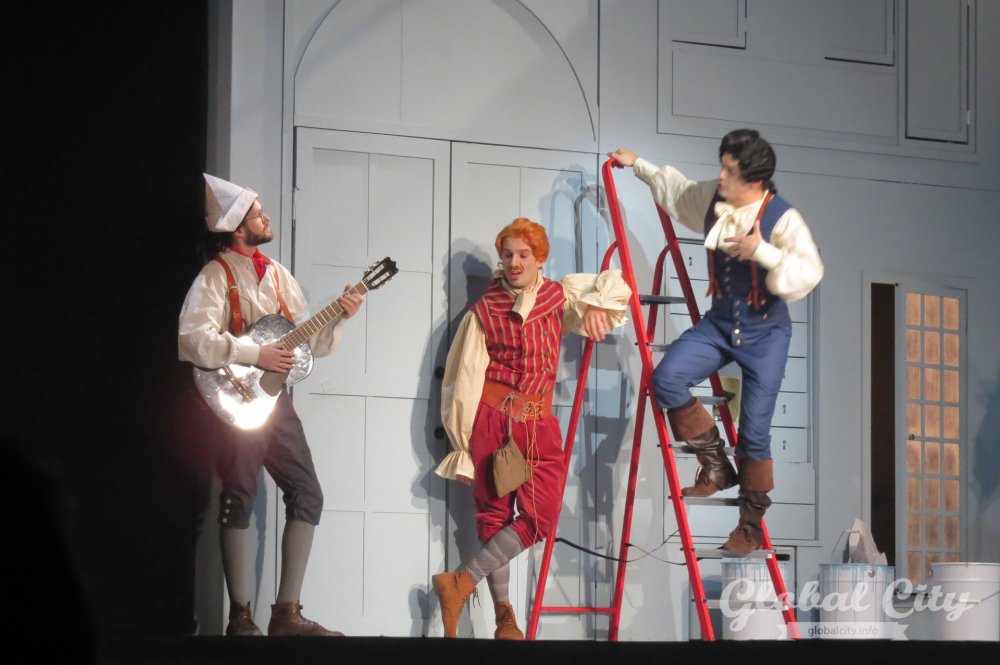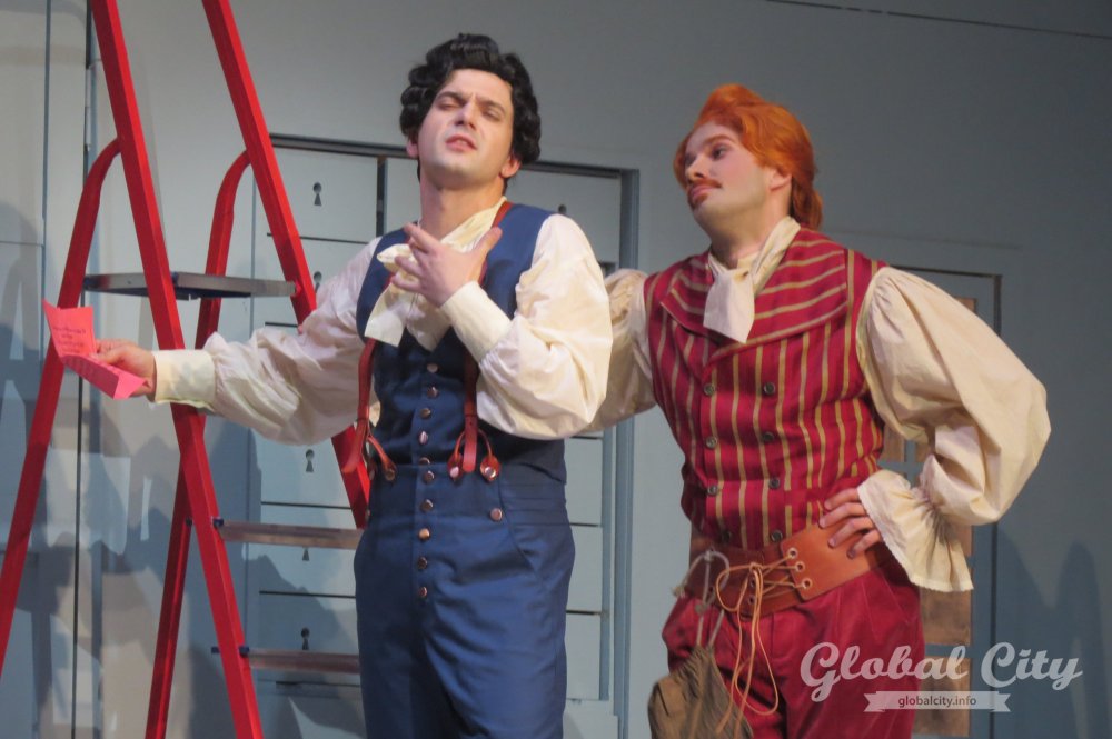 Весь спектакль на итальянском языке, но для коллектива это было не самым сложным. Как рассказали солисты, у них в репертуаре есть оперы на итальянском, французском, немецком, русском, чешском языках и даже на санскрите. Нового «Севильского цирюльника» можно назвать «оперой переодевания» – на протяжении всей постановки герои играют чужие роли и прикидываются теми, кем не являются.