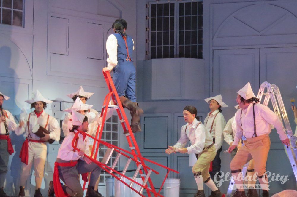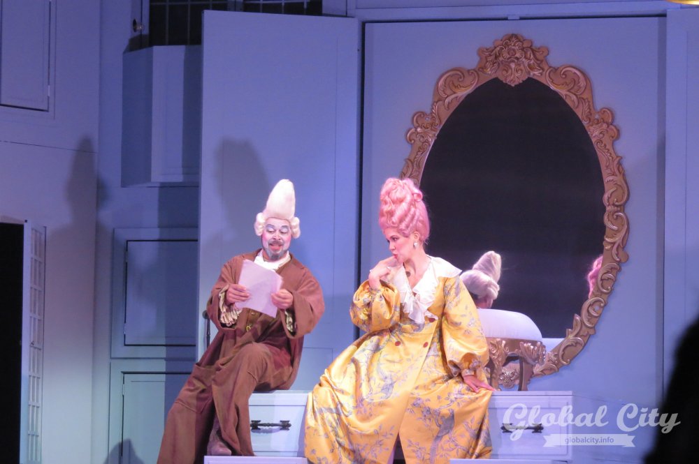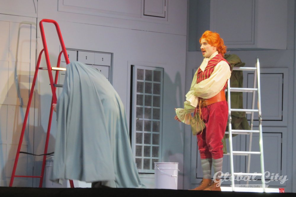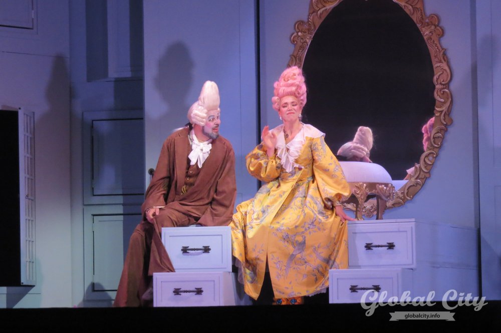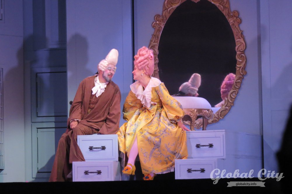 Весь спектакль на итальянском языке, но для коллектива это было не самым сложным. Как рассказали солисты, у них в репертуаре есть оперы на итальянском, французском, немецком, русском, чешском языках и даже на санскрите. Нового «Севильского цирюльника» можно назвать «оперой переодевания» – на протяжении всей постановки герои играют чужие роли и прикидываются теми, кем не являются.