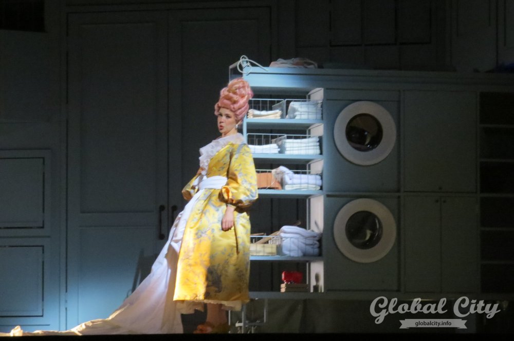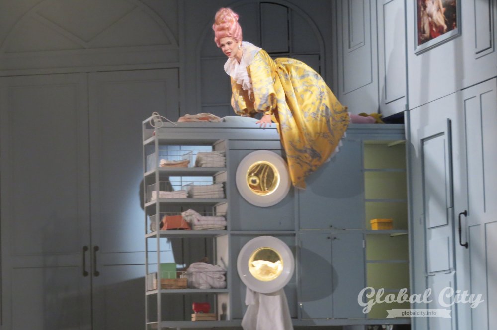 «Севильский цирюльник» – это комедия положения. Она так написана, и она становится смешной только тогда, когда ты это учитываешь. Мы не хотели, уходить в реальные декорации. Понятно, что спектакль ставился много раз, и нам очень хотелось, чтобы это была игра в игре. Мы придумали такую шкатулку на сцене, мини-дом, в котором одновременно есть и улица, и дом, и комнаты. И когда что-то выдвигаем, оказывается, что там целая прачечная. Потом мы задвигаем шкафчик, выдвигаем стол – и теперь у нас это кухня. Эту игру, которая перешла от Бомарше к Россини, и которая за три века уже организовалась в оперных и драматических театрах, решили продолжить в декорациях. Поэтому у нас постоянно происходят небольшие фокусы», – рассказала режиссер-постановщик Надежда Столбова.
