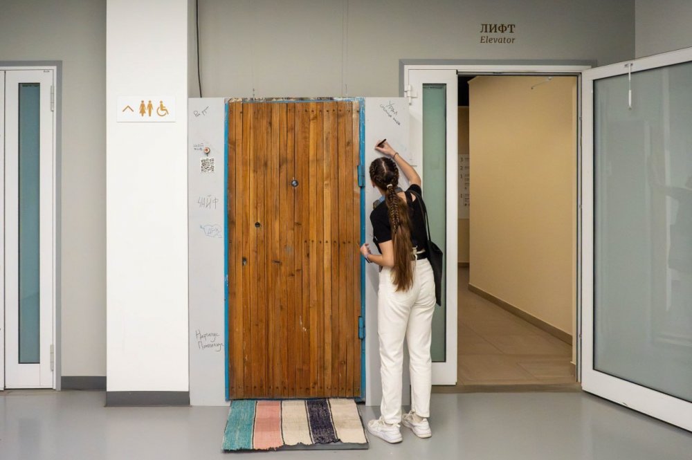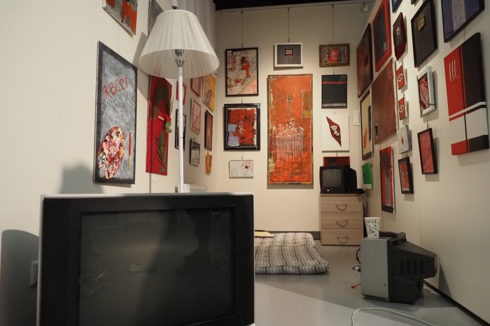 Артем Кицов представил аналоговую инсталляцию в виде «Комнаты воспоминаний». Он наполнил ее реальными предметами – картины, матрас, подушка, торшер, телевизоры, на экранах которых демонстрируются воспоминания художника, снятые им в домашней атмосфере и на улицах Екатеринбурга.