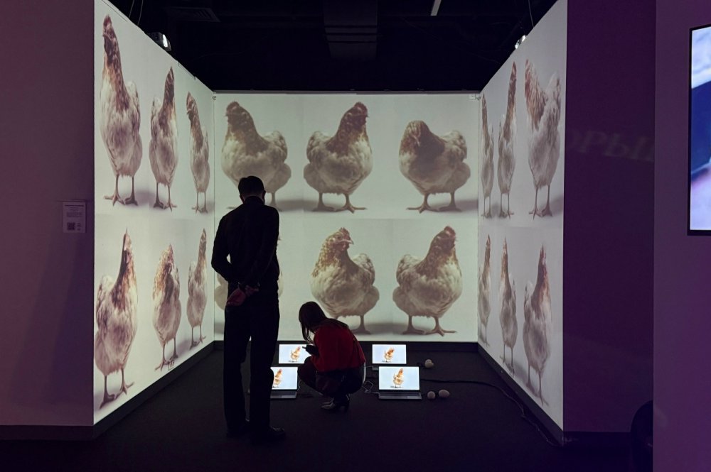 Продолжает тему времени и пространства «Цифровой инкубатор» Кристины Агеевой из Москвы. «Что появилось раньше: яйцо или курица?», – ответ на этот вопрос философский и неоднозначный. Однако автор актуализирует его, подгоняя под наше время, спрашивая в своей работе: «Человек создал искусственный интеллект или искусственный интеллект создал человека?».