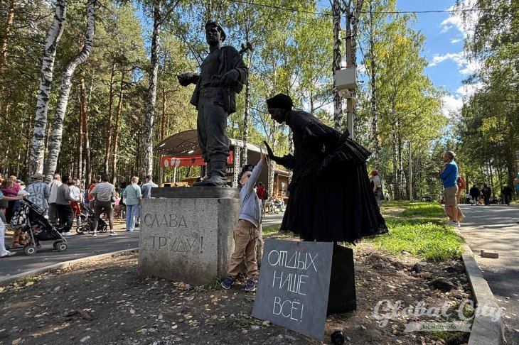 На центральной аллее парка во время фестиваля работали живые статуи, активно вступающие во взаимодействие с посетителями парка. Они же стали участниками перформанса «Парковая скульптура».