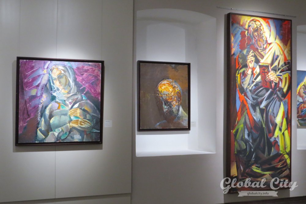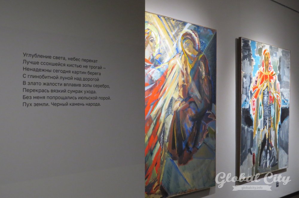 «Ранние работы художника выполнены в более реалистичном ключе, а вот в 70-е годы он перешел на рельсы сурового стиля. Виктор Григорьевич учился у советского художника-живописца Гелия Коржева, и очень большое влияние оказала его манера, его видение живописи и мира в целом. Далее – религиозная тема. Она одна из главнейших для автора, ведь он из старообрядческой семьи, он живет этим и почти все его творчество пронизано религиозным духом. Последний этап связан с темой родственников, его друзей и близких, в зале собралась галерея портретов и две работы на военную тему», – отметила куратор.