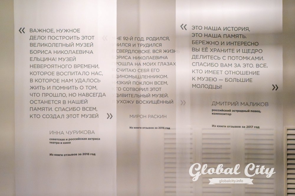 «Нас много критиковали за это решение – почему Екатеринбург, надо было в Москве, ведь это его рабочее место, здесь больше возможностей, больше посетителей, иностранные гости, это будет более заметно. Даже обсуждалось место на ВДНХ. И уже после открытия «Ельцин Центра» мы убедились, что это было абсолютно правильное решение», – поделилась Татьяна Юмашева.